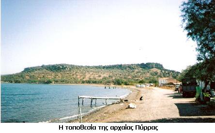 Η αρχαία Πύρρα, ήταν μια από τις έξι αρχαίες πόλεις – κράτη της Λέσβου (Μυτιλήνη, Μήθυμνα, Άντισσα, Πύρρα ,Ερεσός, Αρίσβη ).Η πόλη ήταν χτισμένη πάνω στο φύσει οχυρό ύψωμα, νότια από την εκβολή του ποταμού Βούβαρη. Η ύπαρξή της χρονολογείται από τον 10ο – 8ο π. Χ. μέχρι το 231 π. Χ., οπότε καταστράφηκε από ισχυρό σεισμό .