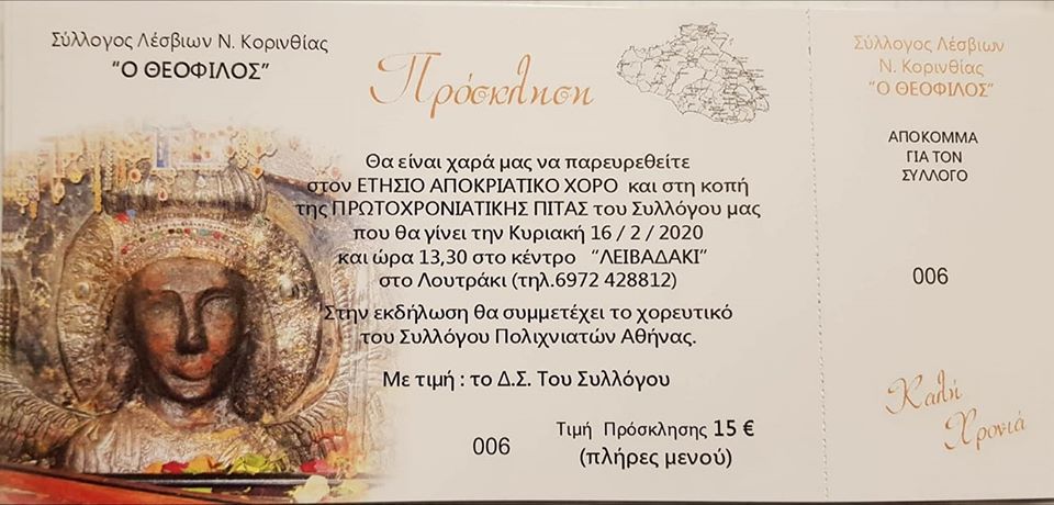 Ο Σύνδεσμος Πλωμαριτών Αττικής «ΒΕΝΙΑΜΙΝ Ο ΛΕΣΒΙΟΣ» συνδιοργανώνει με τον Σύλλογο Νεοχωριτών Λέσβου «Ο ΜΠΟΡΟΣ» Αθήνας και τον Σύλλογο «Απανταχού Παφλιωτών» (Αφάλωνας, Θερμή, Μόρια, Παναγιούδα, Πάμφιλα), τηρώντας όλα τα υγειονομικά πρωτόκολλα, την Κυριακή 14 Μαρτίου 2021 και ώρα 21:00, μέσω της πλατφόρμας viva.gr μια διαδικτυακή εκδήλωση (Online streaming) που θα μεταδοθεί σε Ελλάδα και εξωτερικό, με σκοπό να μας ταξιδέψει στην πανέμορφη Λέσβο και στα χωριά της, να αγκαλιάσει τον ελληνισμό του εξωτερικού και να μας συντροφεύσει με παραδοσιακά ακούσματα και χορούς, σ’ αυτή τη δύσκολη περίοδο που όλοι διανύουμε.…